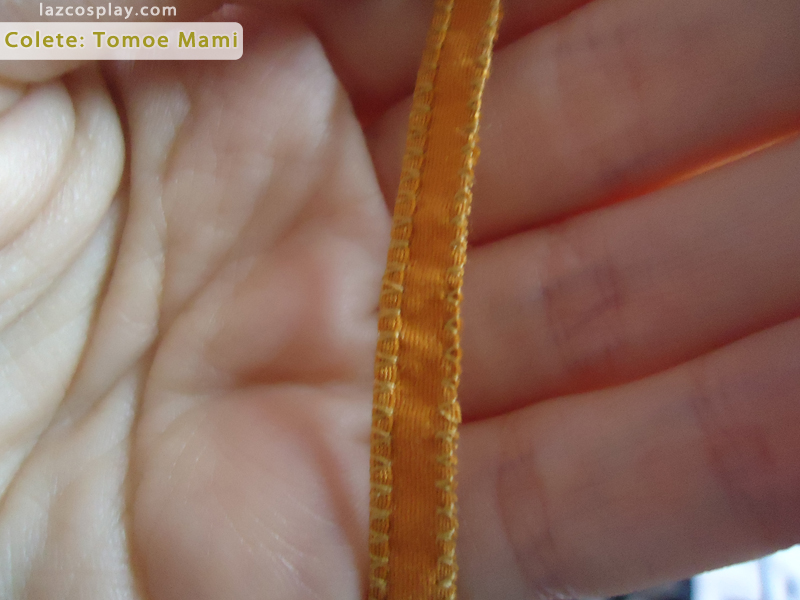 Agora é hora de pregar fitinhas! Eu fiz algumas com o tecido que sobrou da saia, mas se preferir, é só comprar viez da cor mais próxima da sua saia.