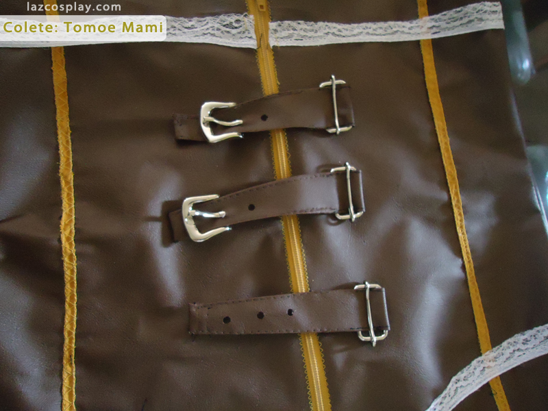 Com o que sobrou da napa marrom, desenhe as fivelas e costure no seu verso, dessa maneira.