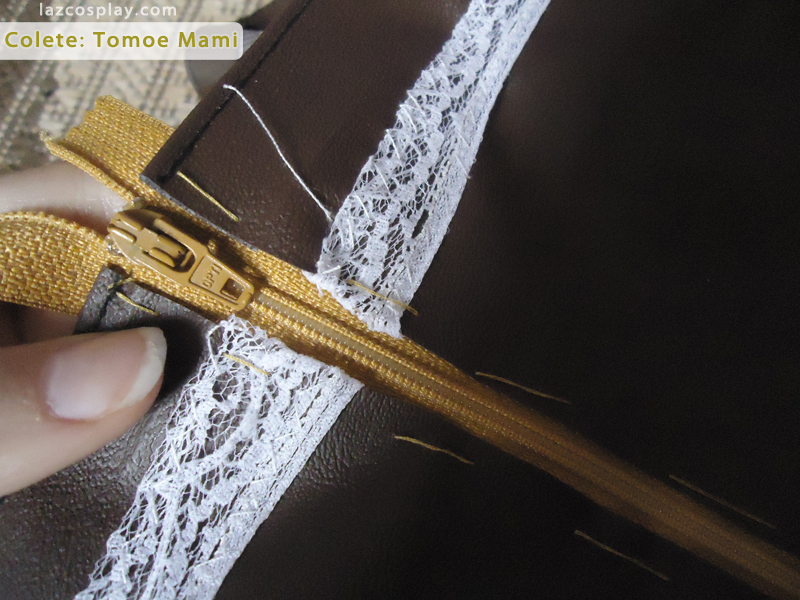 Depois de alinhavar à mão, passei na máquina para um melhor acabamento. Como o corpete era menor que 20cm, cortei o que sobrou e fechei a aprte inferior com um pontinho na agulha.